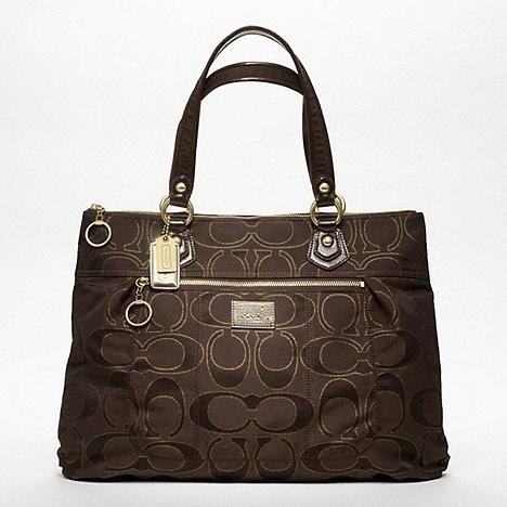 The popular, take-everywhere Glam Tote in shimmery sateen, updated in lovely new shades with patent leather trim and expanded capacity.